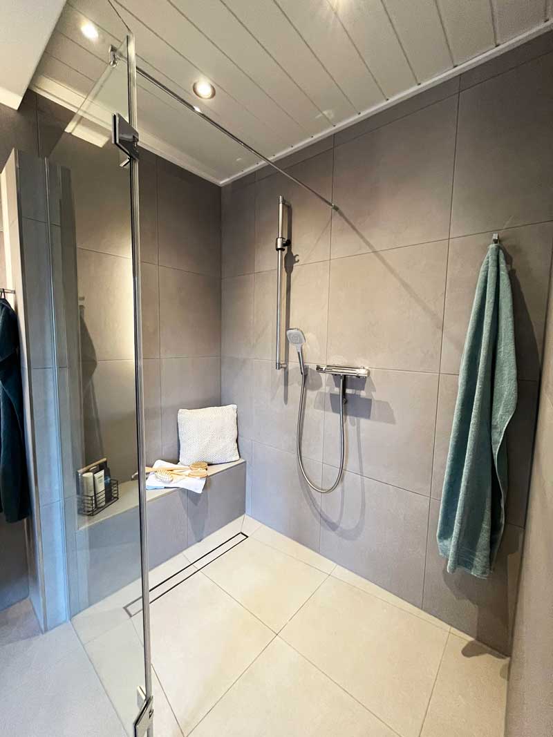 Da körperliche Einschränkungen im Alltag zunehmen, war es der Familie wichtig, ein funktionales und pflegeleichtes Badezimmer zu schaffen. Die Sanierung haben wir daher mit besonderem Blick auf Komfort und Zukunftstauglichkeit umgesetzt.